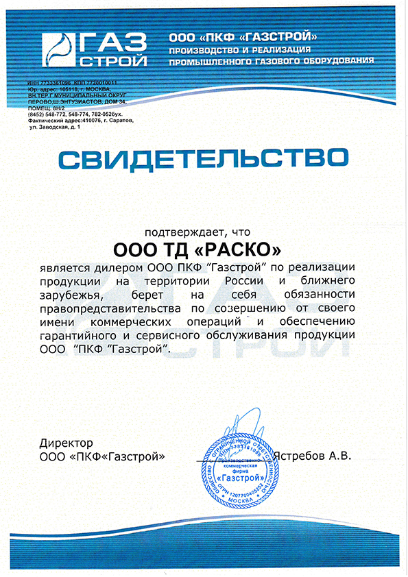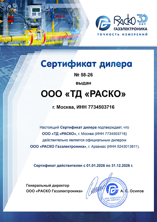 ООО «ТД «РАСКО» аккредитован ГУП МО «Мособлгаз» в области монтажа, пуско-наладки, сервисного обслуживания, ремонта измерительных комплексов узлов учета газа и рекомендуется предприятиям всех форм собственности в Московской области для привлечения в качестве подрядной организации.