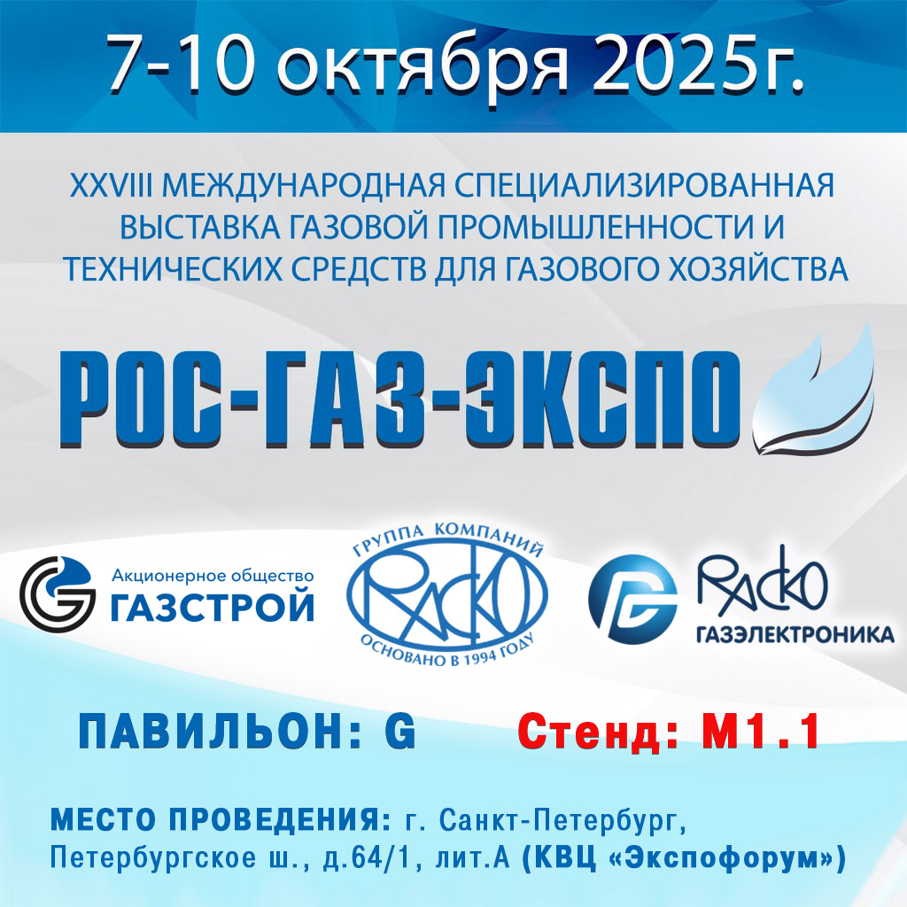 Приглашаем Вас посетить наш стенд на выставке "РОС-ГАЗ-ЭКСПО 2025" с 7 по 10 октября, г. Санкт-Петербург, («Экспофорум», пав. G, стенд М1.1)!