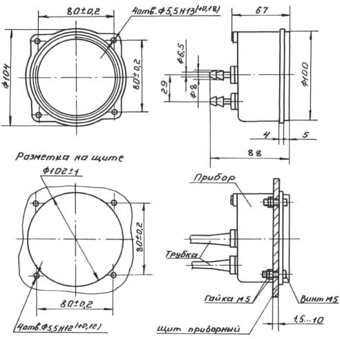 Работа дифманометров-напоромеров ДНМП-100-М1 основана на принципе уравновешивания давления, подаваемого на прибор, с усилием, возникающим в результате упругой деформации чувствительного элемента — мембранной коробки.