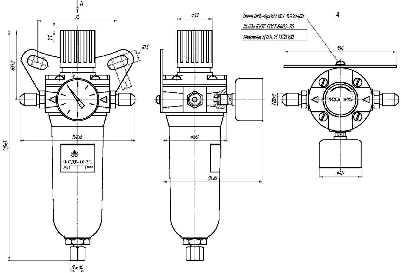 Тип соединения с внешними пневматическими линиями фильтра-стабилизатора давления воздуха по ГОСТ 25165-82: 00-01-1, 00-02-2.