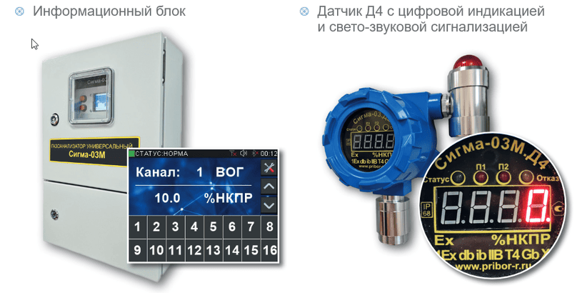 Газоанализатор универсальный Сигма-03М — это непрерывный контроль более 60 взрывоопасных газов и более 20 токсичных газов.