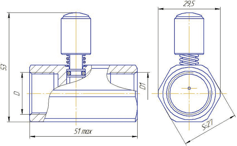 | Конструктивное исполнение по типу присоединительной резьбы на входе D | М1 — наружная резьба G1/2″ |