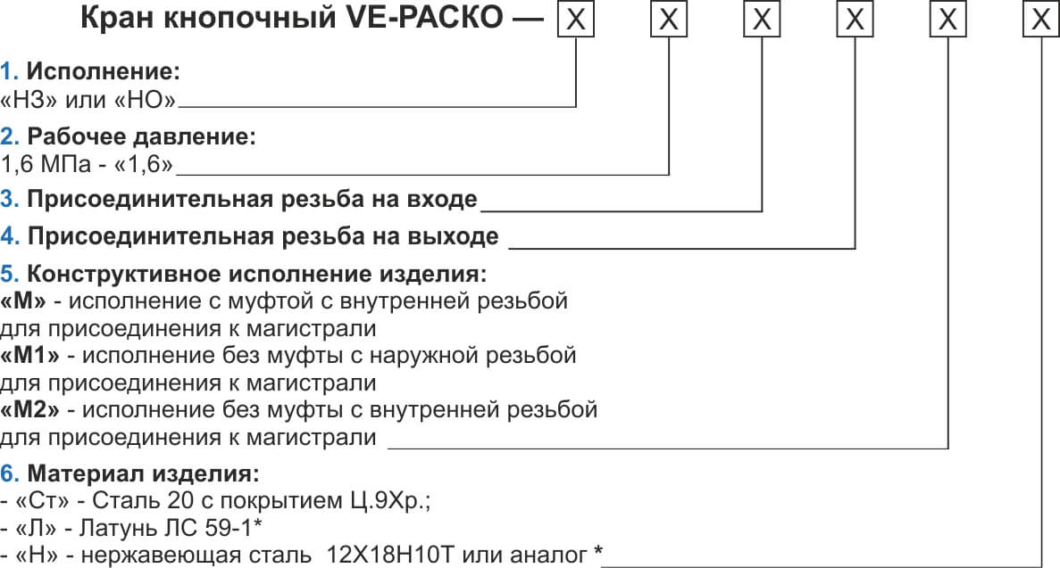 «Кран кнопочный VE-РАСКО-НО-1,6- G1/2 -М20-М2 ТУ 4212-134-00227471-2009».