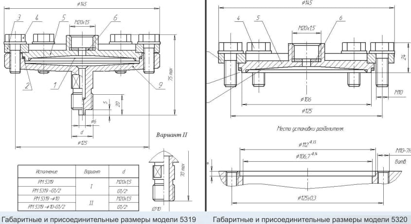 | 16 | РМ 5320С-01-М30 (с резьбой М30х1,5, болтами М10 и с дополнительной фторопластовой мембраной) |