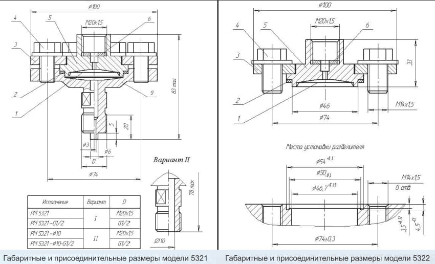 | 30 | РМ 5322С-01-M14 (с резьбой М20х1,5, с болтами М14х1,5 и дополнительной фторопластовой мембраной) |