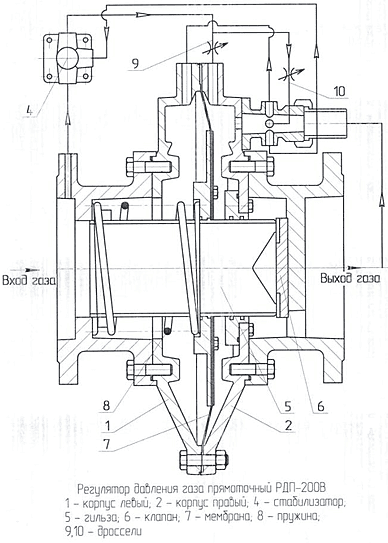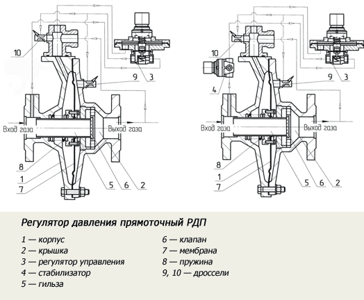 Прямоточные регуляторы давления газа РДП-50Н(В), РДП-100Н(В), РДП-200Н(В) предназначены для снижения (редуцирования) давления газа высокого (В) или среднего (Н) уровня и автоматического поддержания стабильного выходного давления, независимо от колебаний входного давления и изменения расхода.