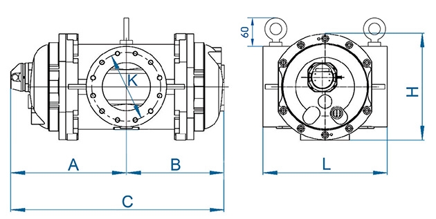 | DN, мм | C, мм | A, мм | B, мм | H, мм | L, мм | K, мм | ||